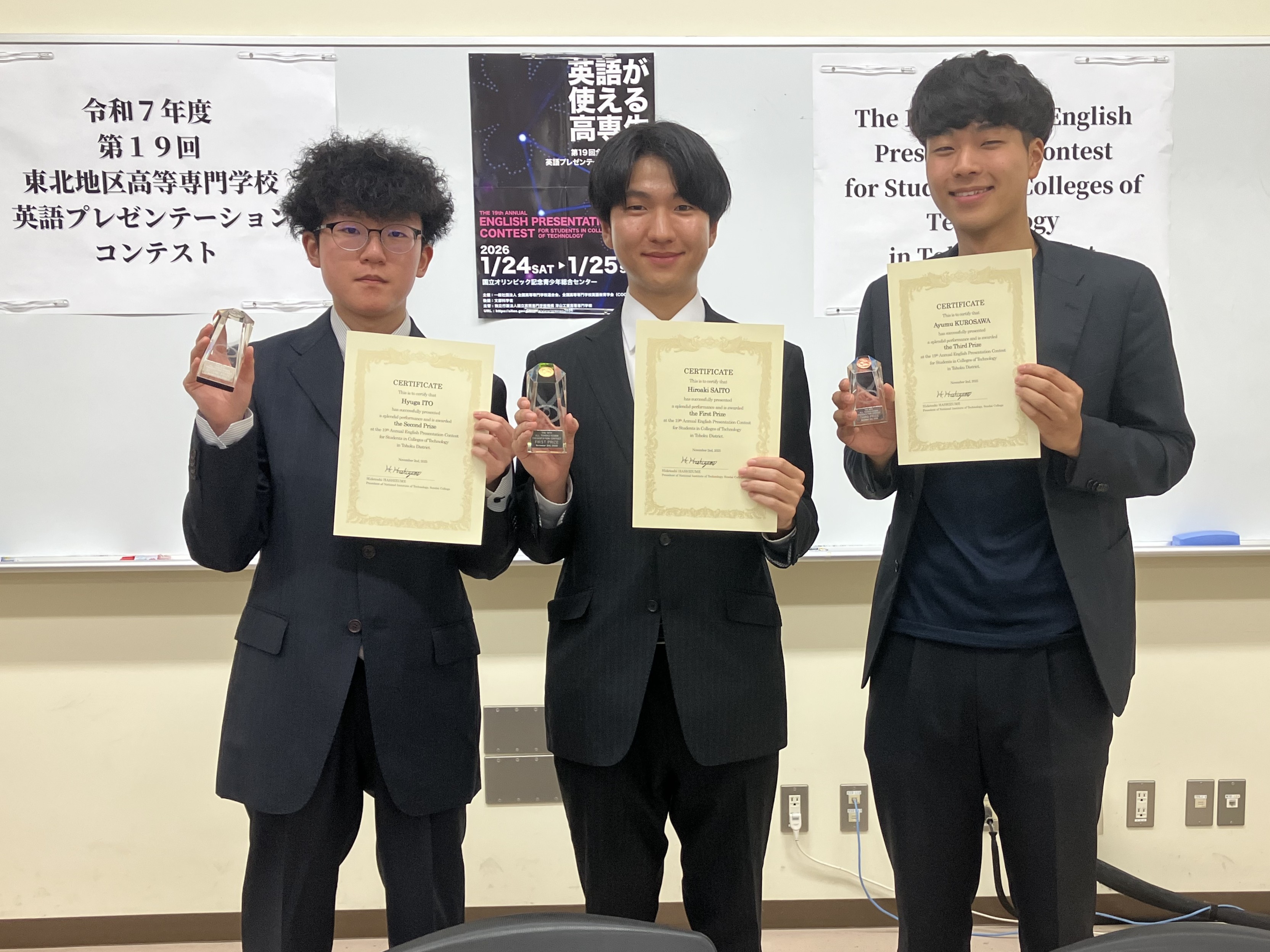 第19回東北地区高等専門学校英語プレゼンテーションコンテストで本校学生が3位に入賞しました!