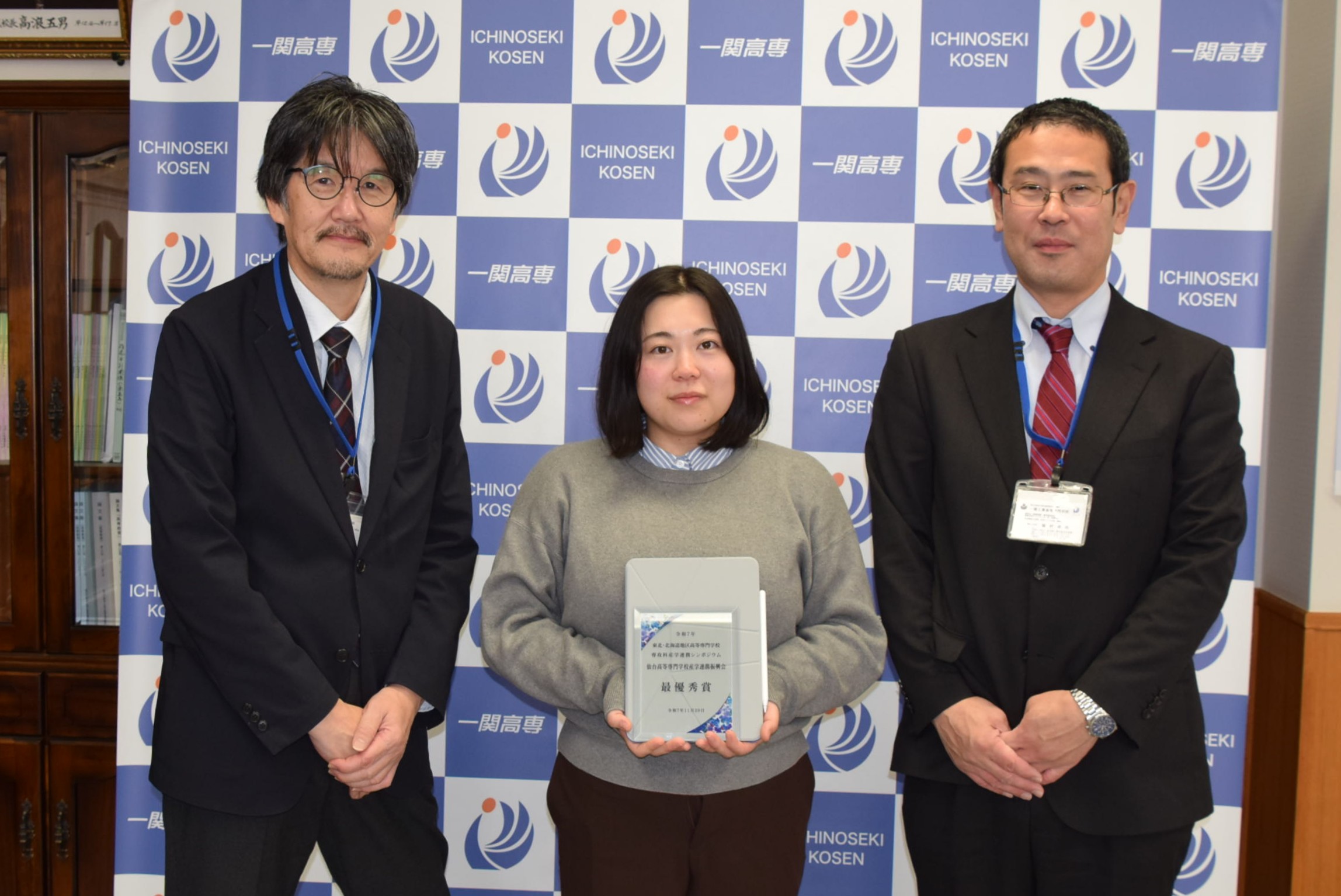 東北・北海道地区高等専門学校専攻科産学連携シンポジウムで専攻科2年の藤澤萌さんが最優秀賞を受賞し...