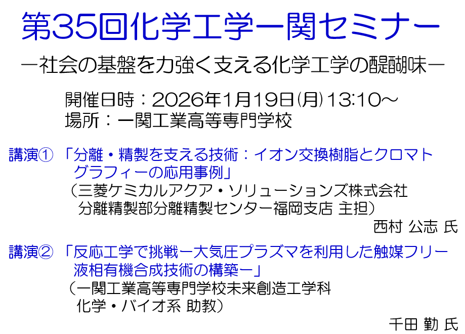 第35回化学工学一関セミナーを開催します