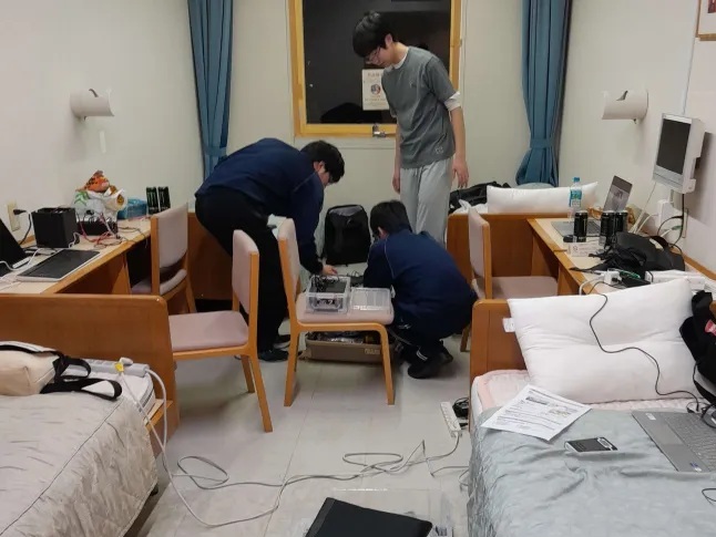 写真:本戦前日のホテルでのデバッグ作業