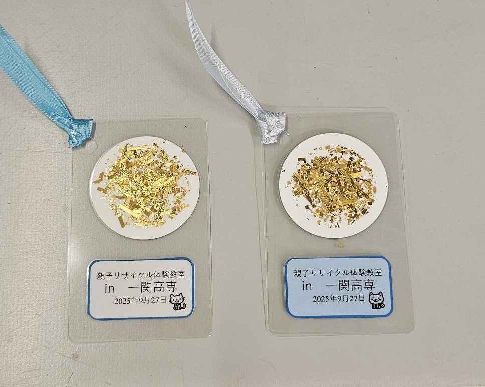 当日は市内や宮城県北の小学校から計11組の親子に参加いただき、ニッコー・ファインメック株式会社様(一関市千厩町)と本校を会場に、リサイクル工場の見学やゲーム機の分解、小型家電から取り出した金箔による栞作成などを体験していただきました。