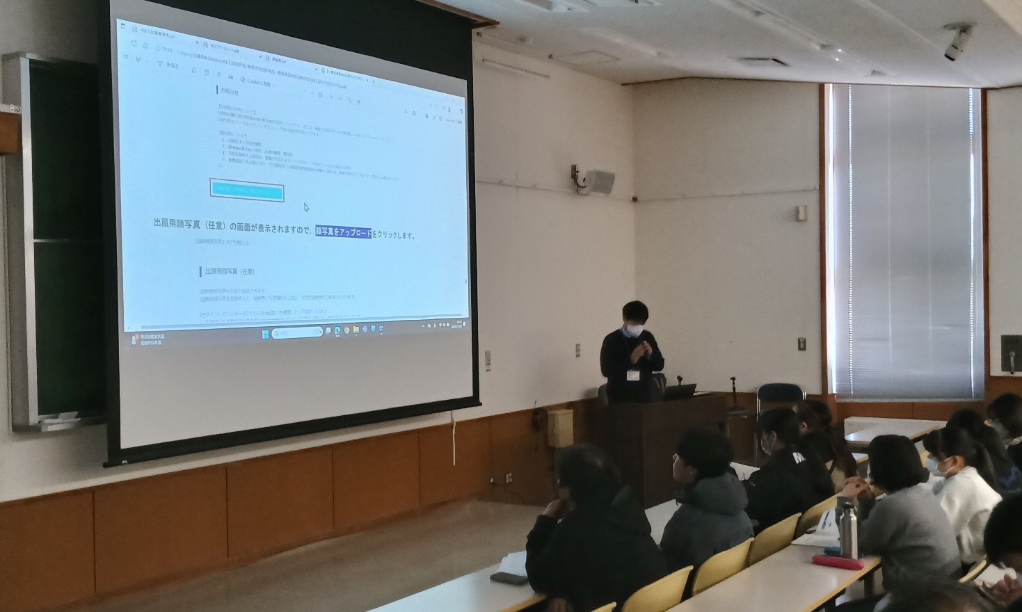 学生課職員によるオンライン出願方法に関する説明