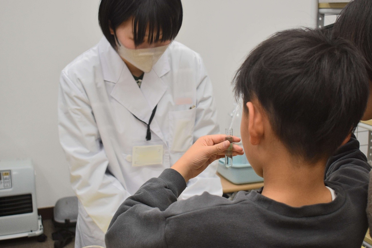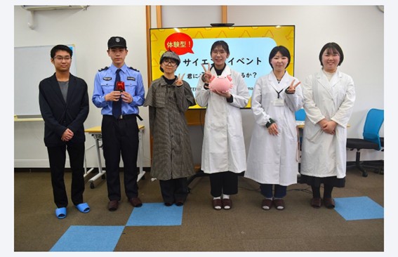 散りばめられたヒントをもとにクイズを解き進め、化学的手法を用いて“事件”の真相に迫る体験型企画を実施しました。子どもから大人まで、参加者は熱心に謎解きに挑戦していました。
