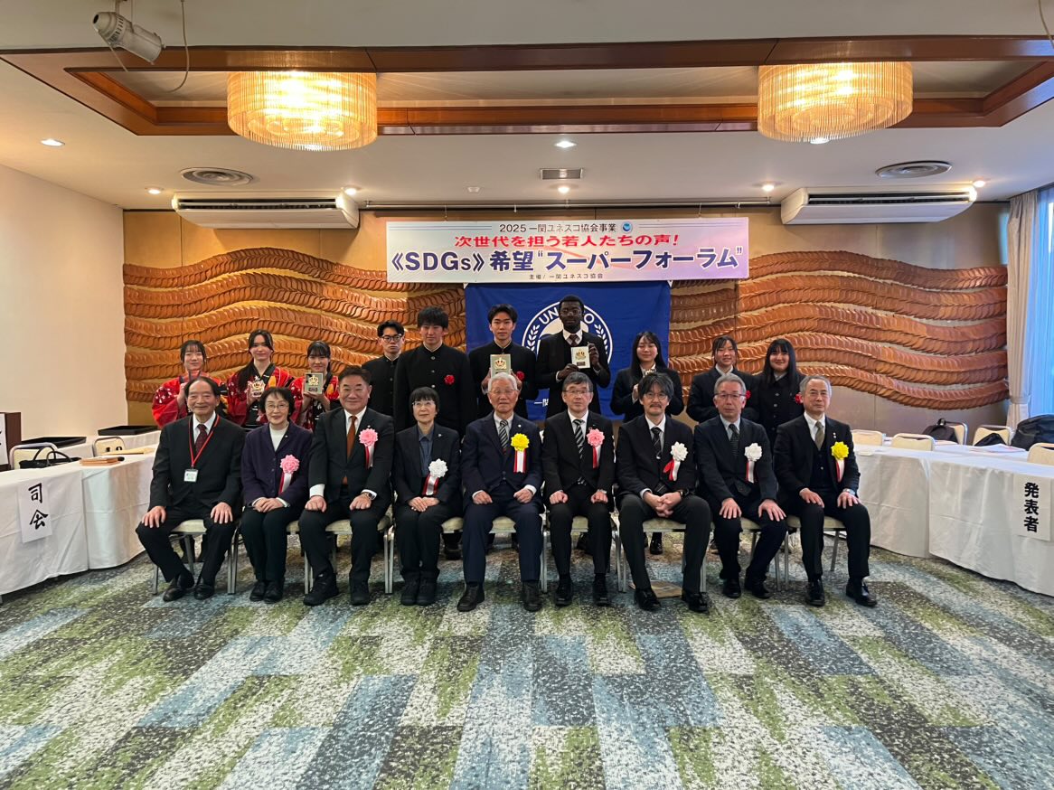 一関ユネスコ協会が主催する「SDGs 希望スーパーフォーラム」が、令和8年1月25日(日)にホテル松の薫一関にて開催されました。SDGs(持続可能な開発目標)をテーマに、次世代を担う若者の声を地域・世界へ発信する ことを目的とし、自然災害、温暖化、紛争など、地球が直面する深刻な課題に対して、若者が提案・発信する場をつくるという趣旨で開催されたものです。