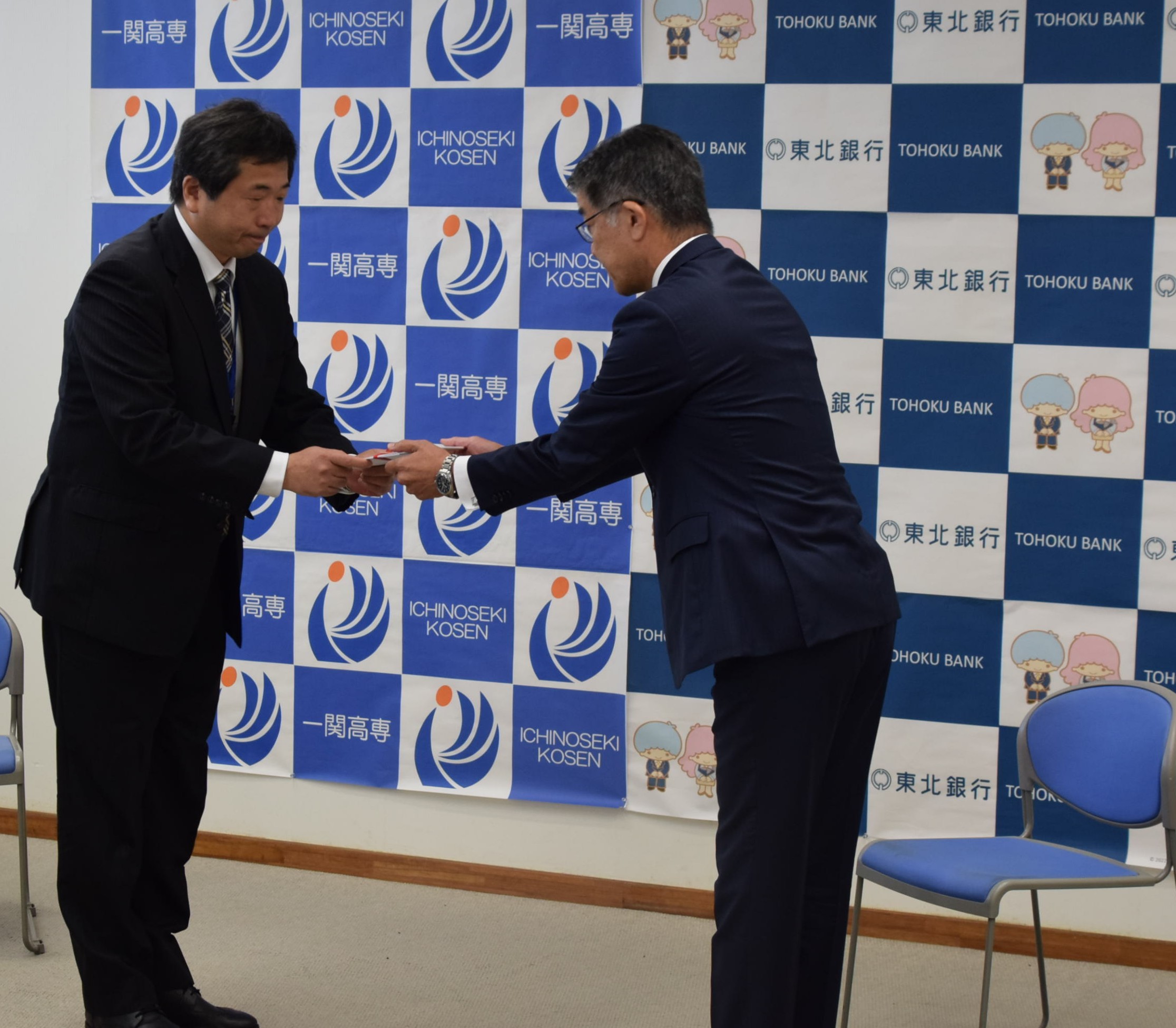 左:本校照井副校長(学生担当) 、右:東北銀行 取締役専務執行役員 高橋淳悦 様