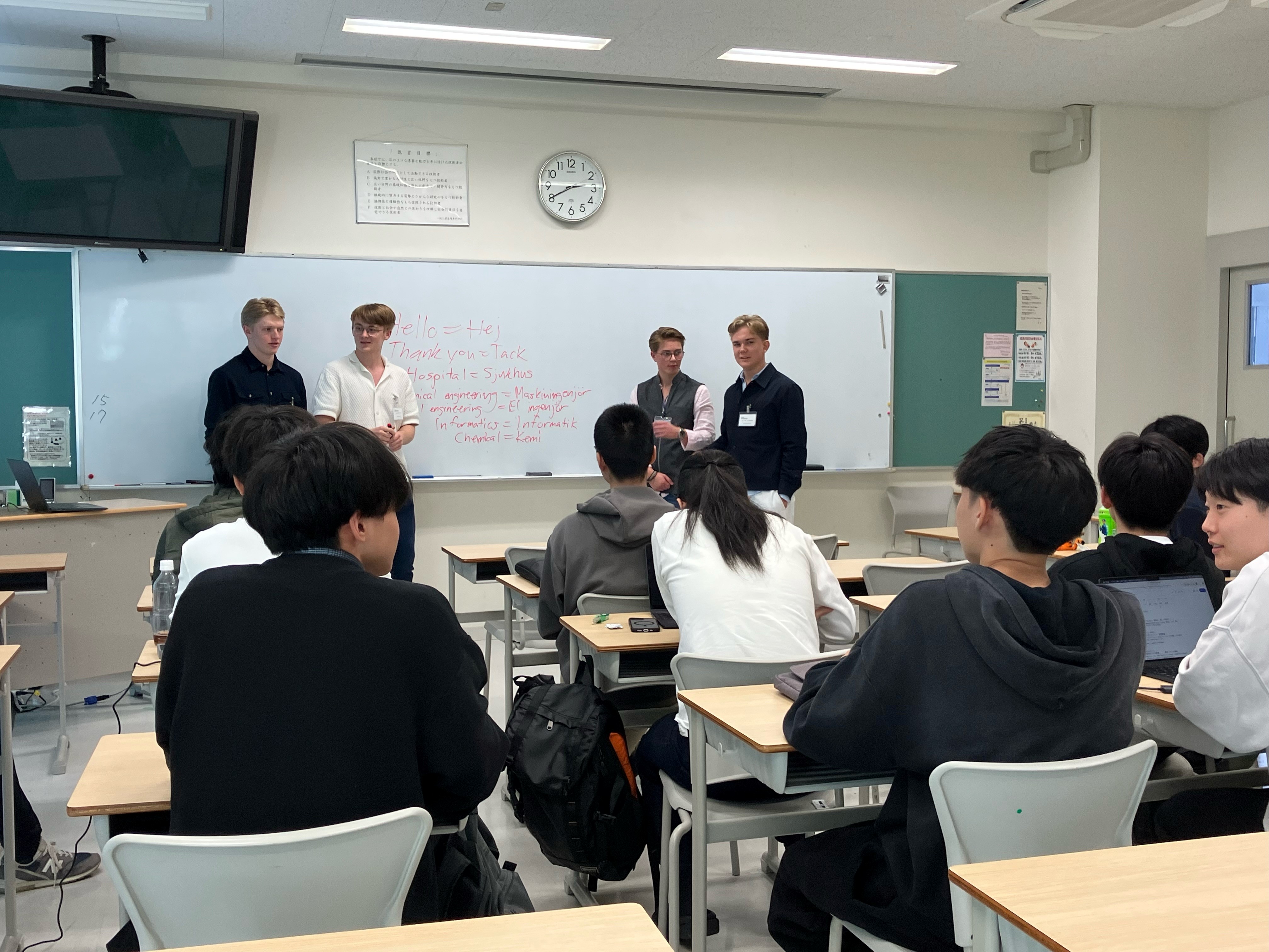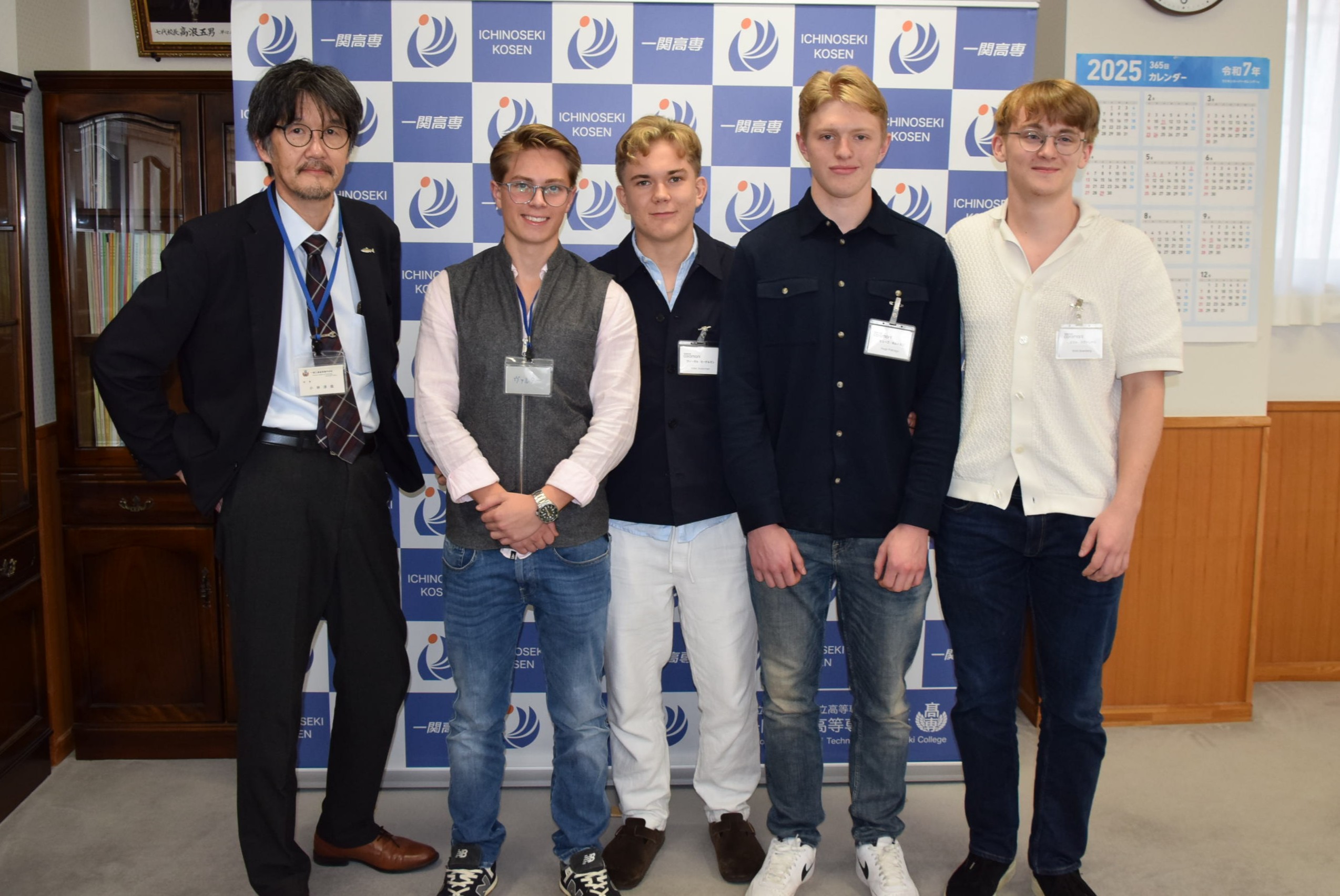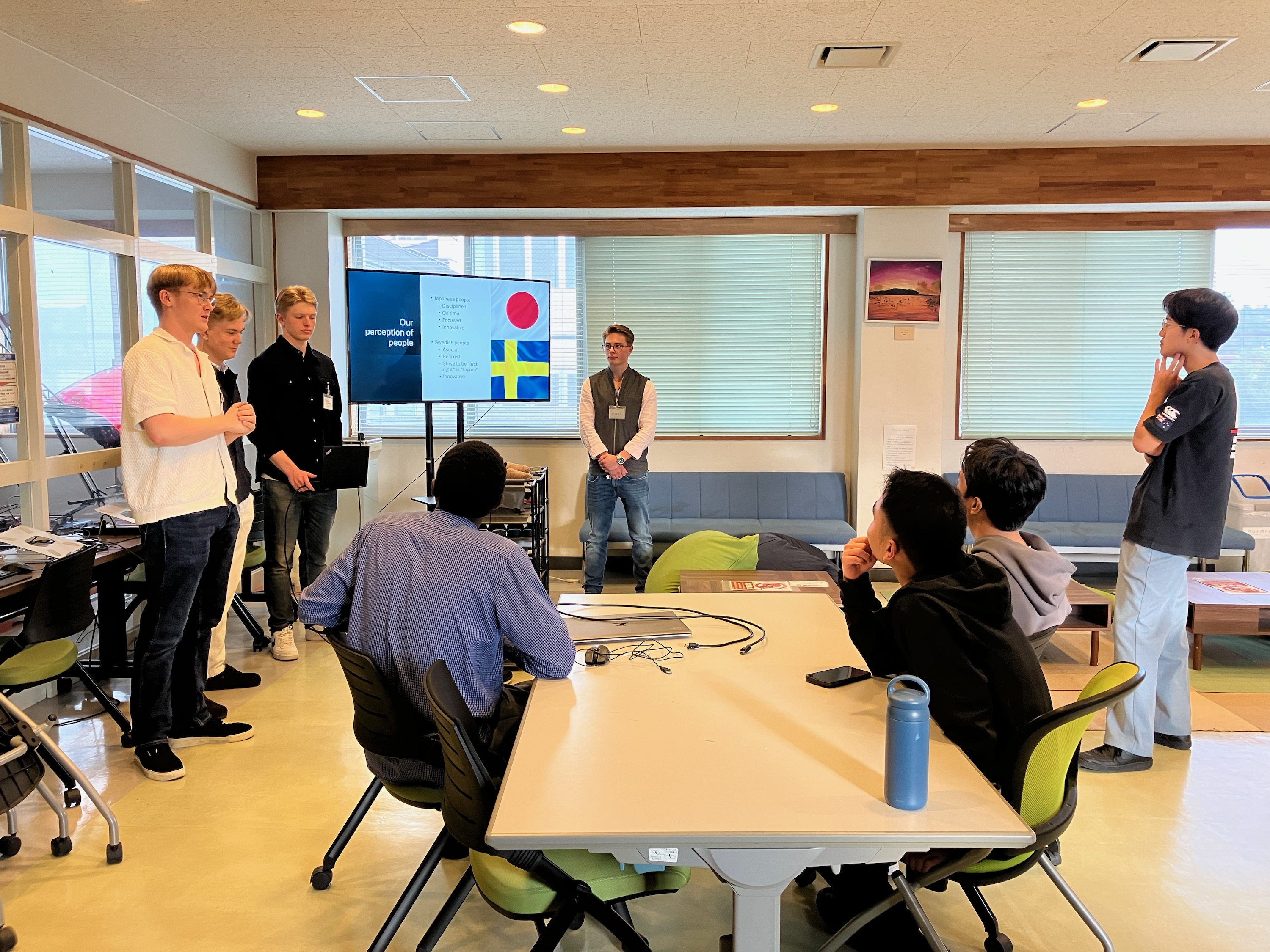 校長先生に挨拶をした後、機械実習工場などを見学し、専攻科1年の授業「英語プレゼンテーション」へも参加し、授業を通して本校学生との活発な交流を行いました。その後は自動車部の活動を見学し、最後にスウェーデンの学校生活や文化について紹介してくれるなど、互いに刺激の多い時間となりました。