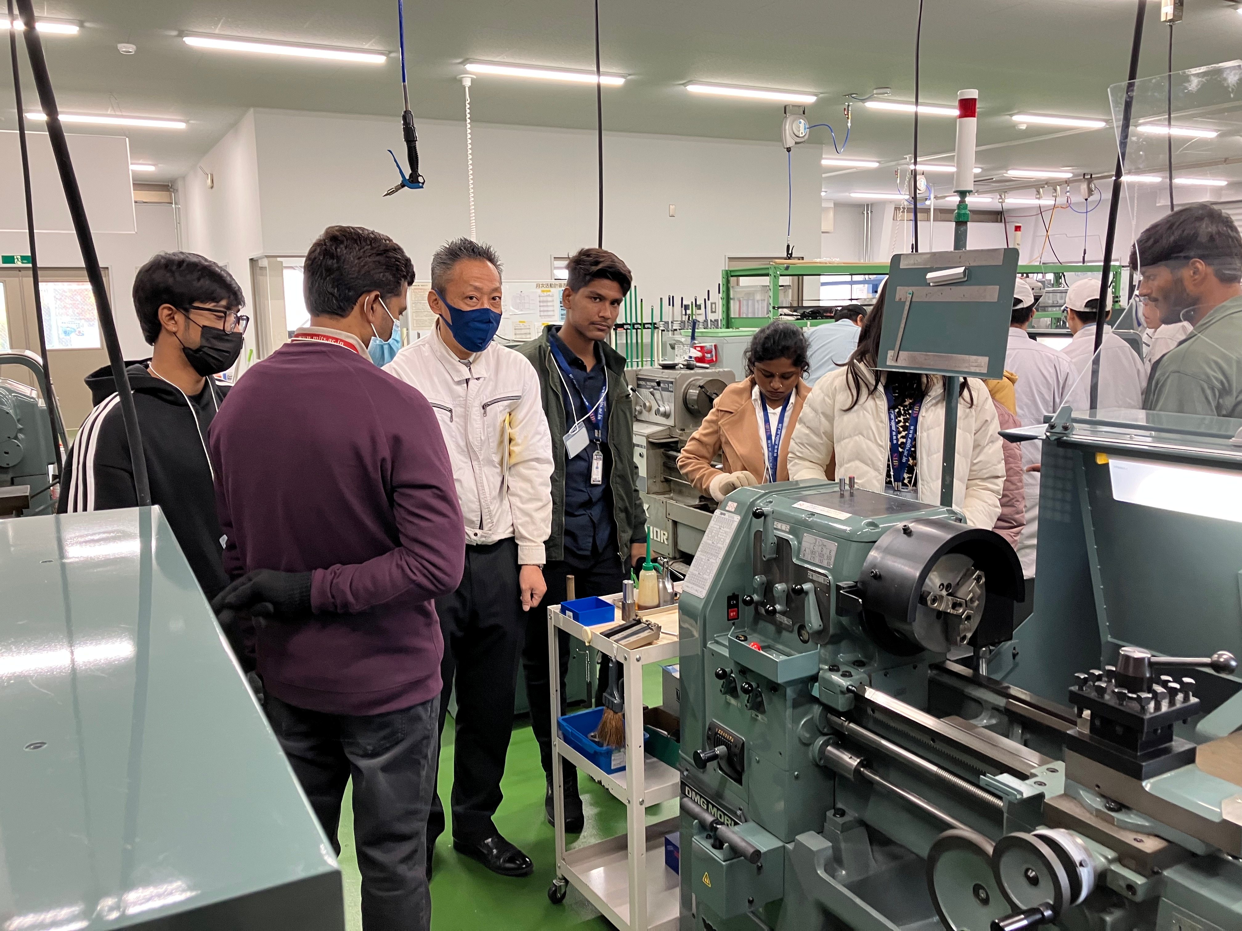 この研修はさくらサイエンスプログラムとして実施しているものです。研修は校長先生への表敬訪問に始まり、機械実習工場の見学や自動車部によるマシン走行の視察、村上商会での企業見学などを通して、本校および日本の技術への理解を深め、課題解決につながるプロジェクトの作成に取り組みました。
