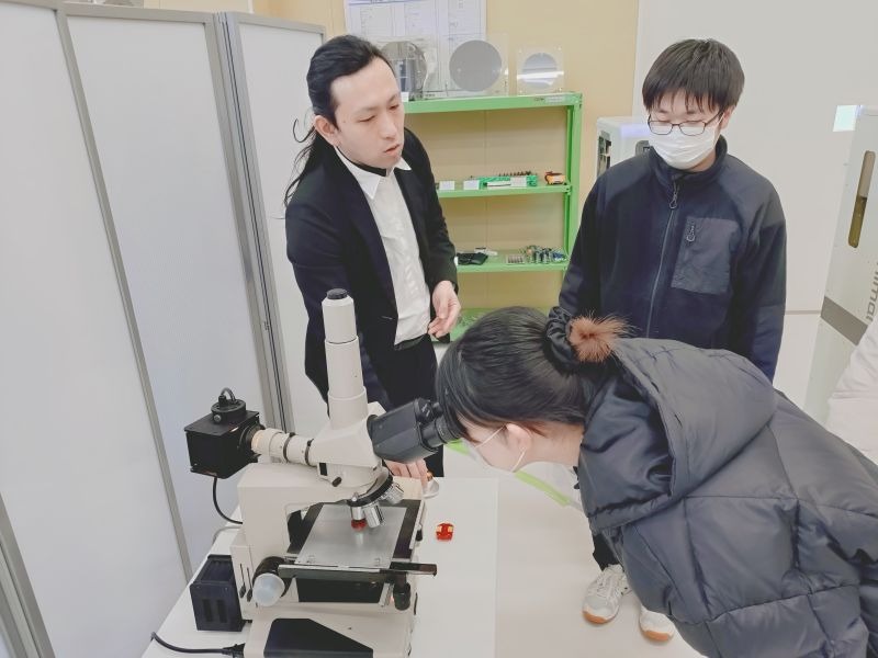 本講座は、小型半導体製造装置「ミニマルファブ」を用いて半導体の製造工程を学び、半導体関連産業への興味・関心を高めることを目的として開講されたものです。半導体製造に関する座学を受講したのち、実際の設備およびミニマルファブの見学を行いました。