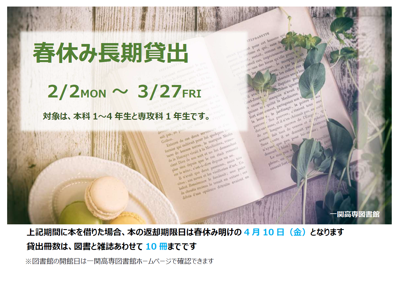 春休み長期貸出(本科1~4年生、専攻科1年生対象)について【お知らせ】